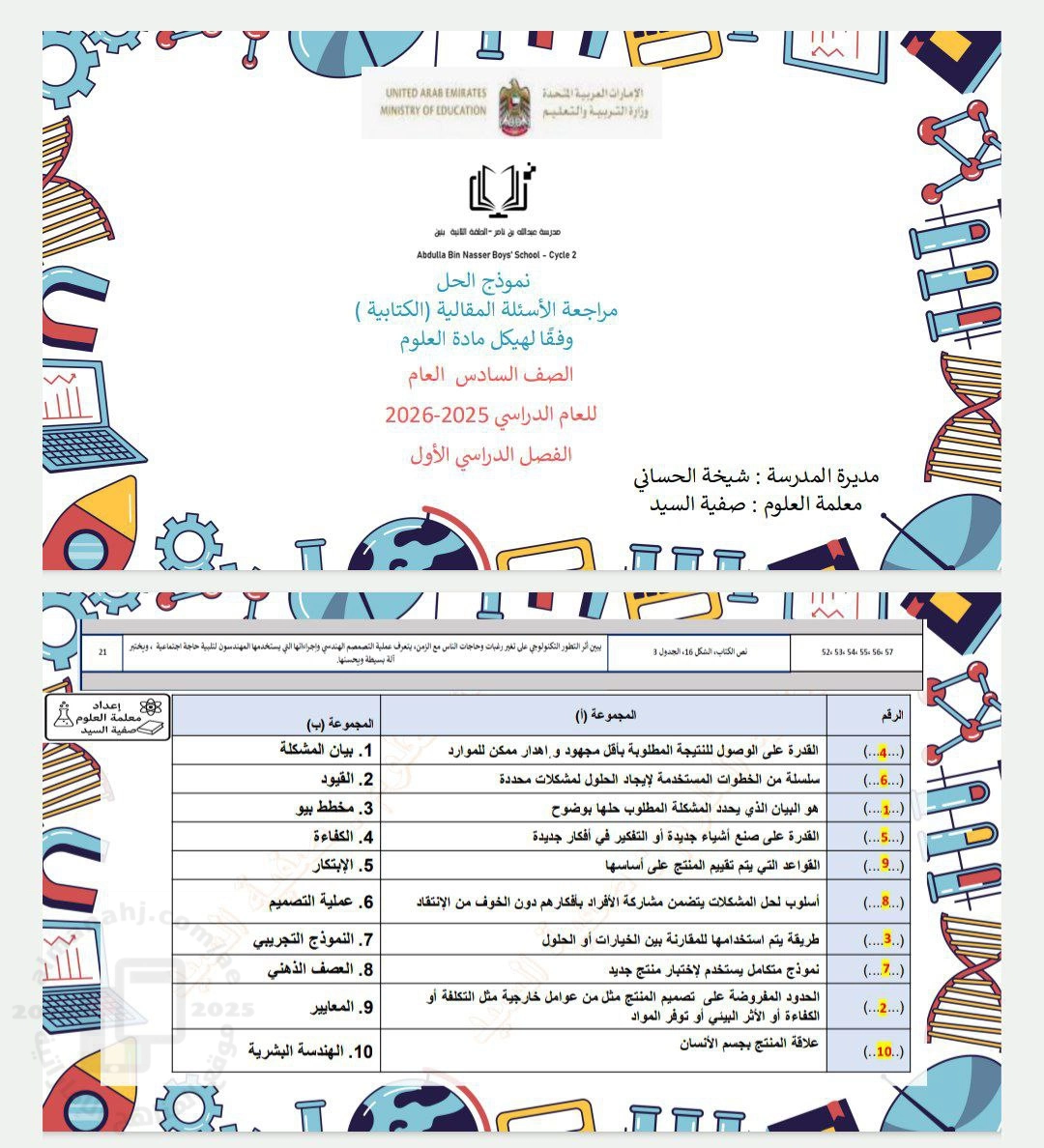 | السابق: المراجعة النهائية الأسئلة الكتابية وفق الهيكل الوزاري الجديد منهج بريدج | الملف الحالي: 36985 | أنت تتصفح الملف الأخير في الصف السادس |