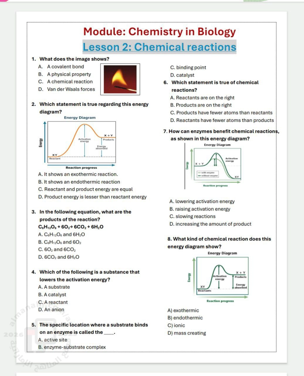 13. الصف الحادي عشر العام, كيمياء, تجميعة أسئلة وفق الهيكل الوزاري الجديد منهج انسباير