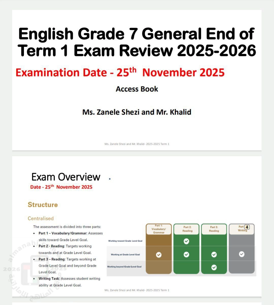 | 1. كل ما يخص امتحان الاعادة (تمكين) للصف السابع