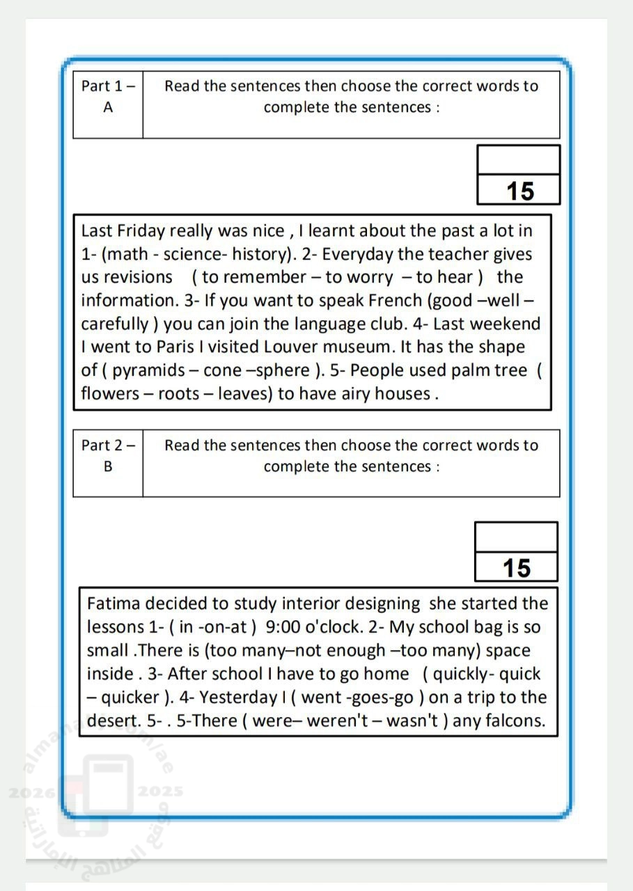 | السابق: مراجعة صفحات الكتاب وفق الهيكل الوزاري منهج انسباير مع الحلول | الملف الحالي: 37015 | التالي: تدريبات قراءة Reading وفق الهيكل الوزاري الجديد |