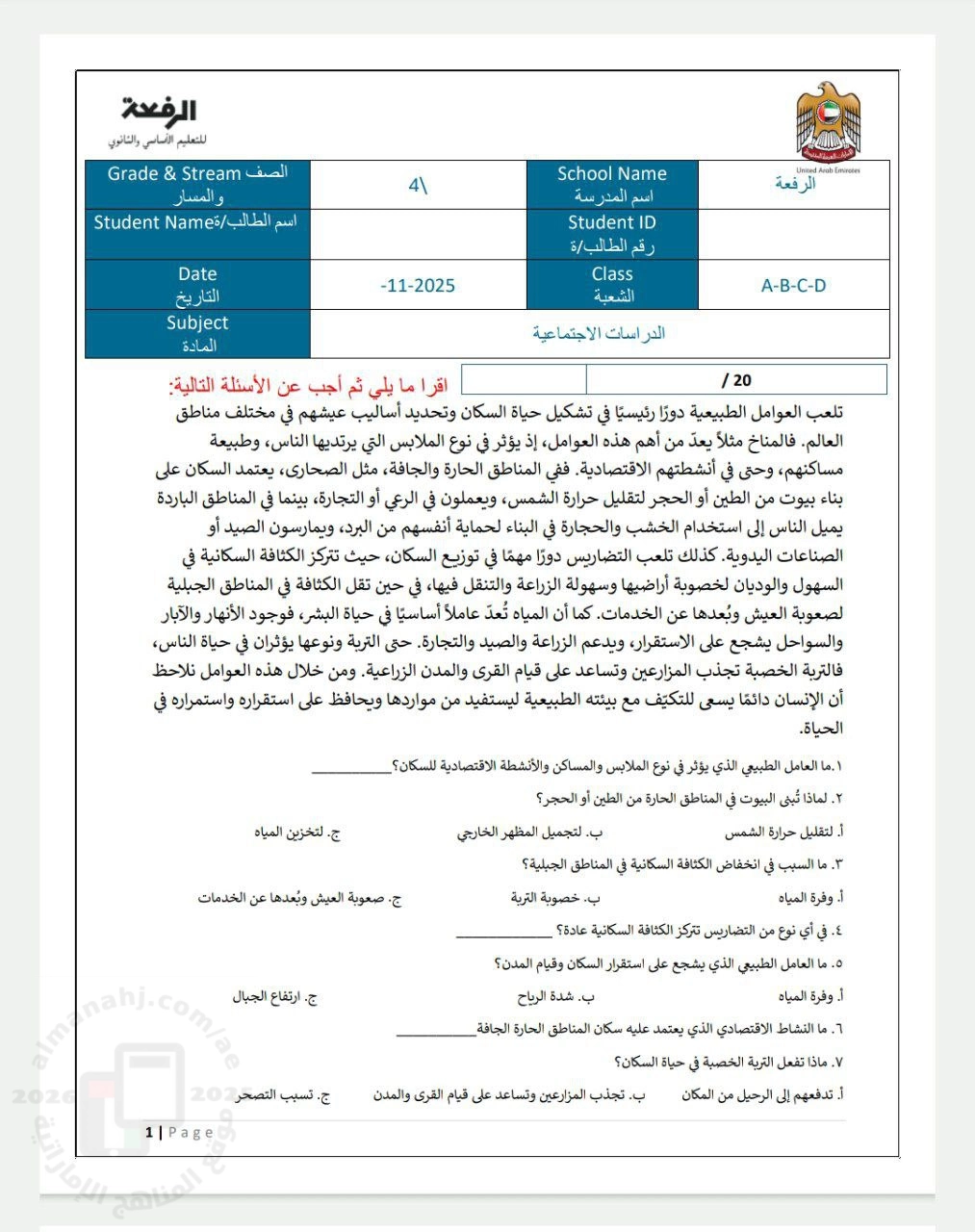 | تنويه: المناهج الإماراتية هو موقع مجاني وغير رسمي ولا يتطلب اشتراك لتحميل الملفات، لذلك يرجى عدم دفع أي مبلغ أو الاشتراك من أجل تحميل الملفات. | |
