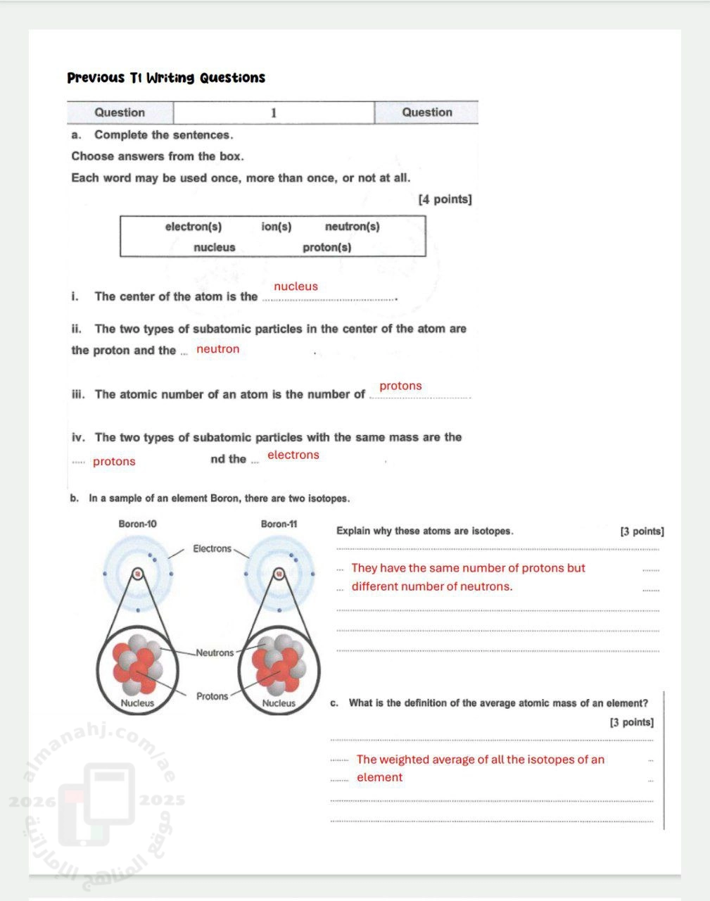 8. الصف الثامن, لغة انجليزية, مراجعة تدريبات مفردات و كتابة متبوعة بالإجابات وفق الهيكل الوزاري أكسس
