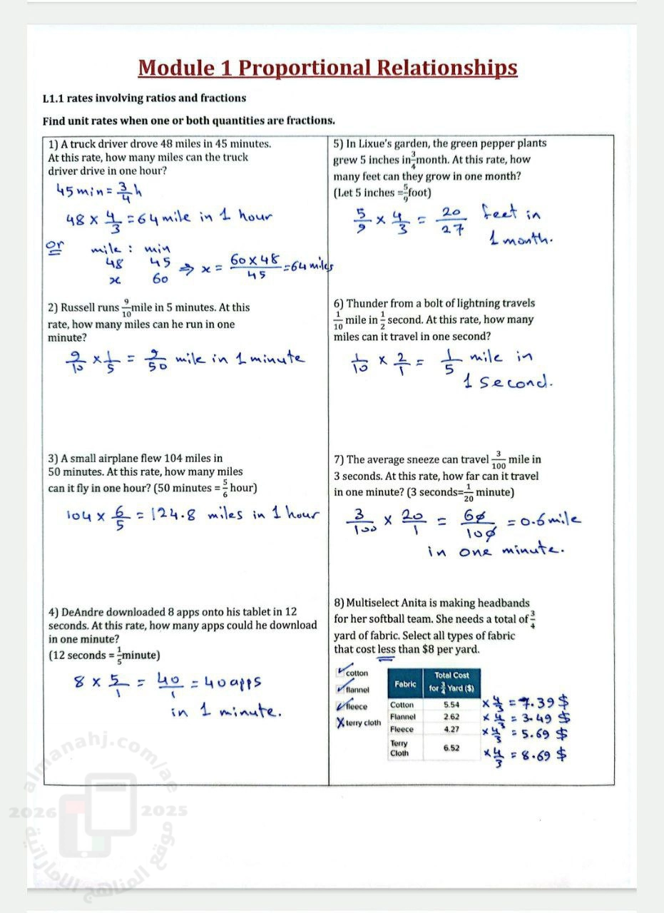 4. الصف السابع, رياضيات, حل مراجعة نهائية وفق الهيكل الوزاري منهج ريفيل المسار المتقدم