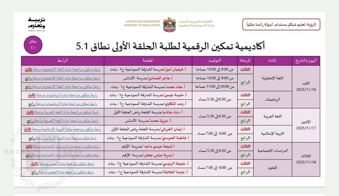 | أنت هنا: موقع المناهج ⇦ المناهج الإماراتية ⇦ الحلقة الأولى ⇦ التعلم عن بعد ⇦ الفصل الأول ⇦ ملفات متنوعة |