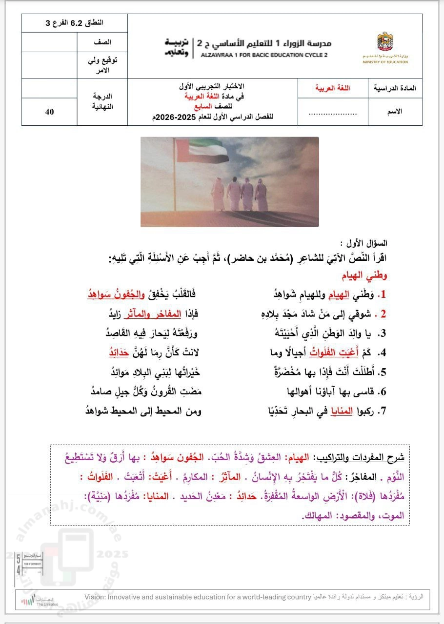 | أنت هنا: موقع المناهج ⇦ المناهج الإماراتية ⇦ الصف السابع ⇦ لغة عربية ⇦ الفصل الأول ⇦ اختبارات |