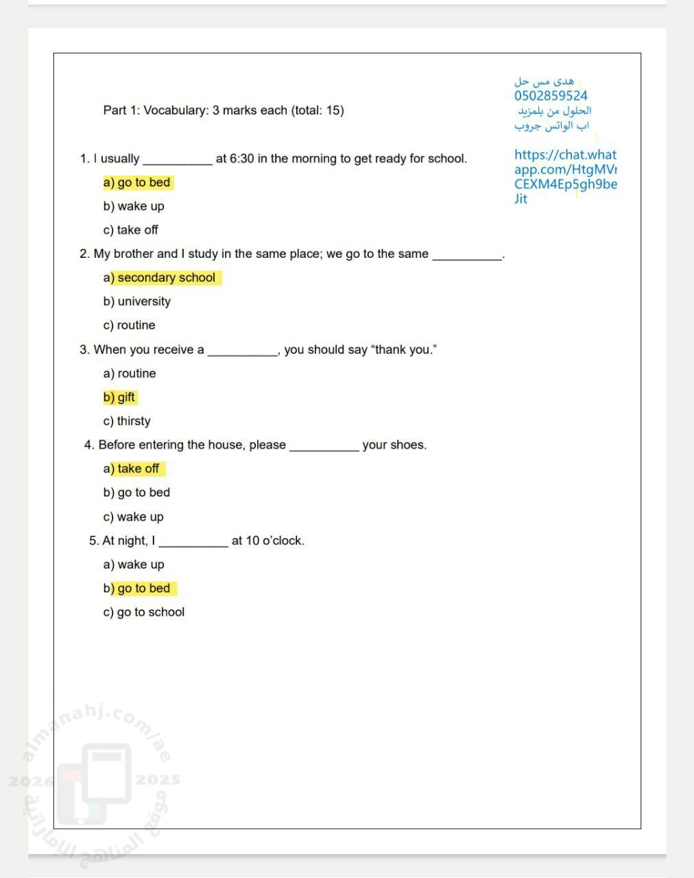 نموذج الأسئلة من الرابط التالي : https://almanahj.com/ae/id=37004 | ||