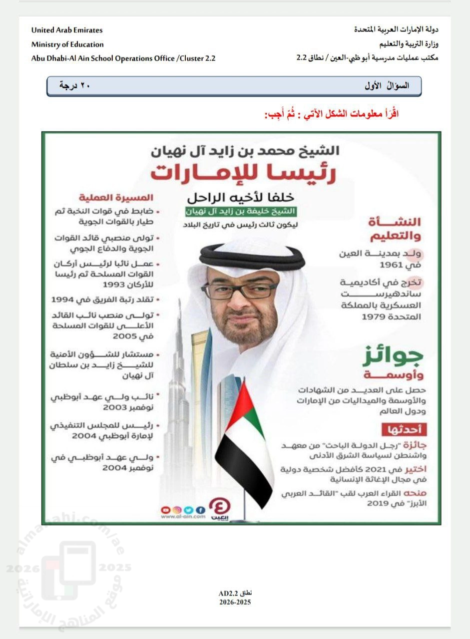 | نموذج تدريبي ثان وفق الهيكل الوزاري متبوع بالإجابات - إعداد: مكتب عمليات مدرسية أبو ظبي | ||