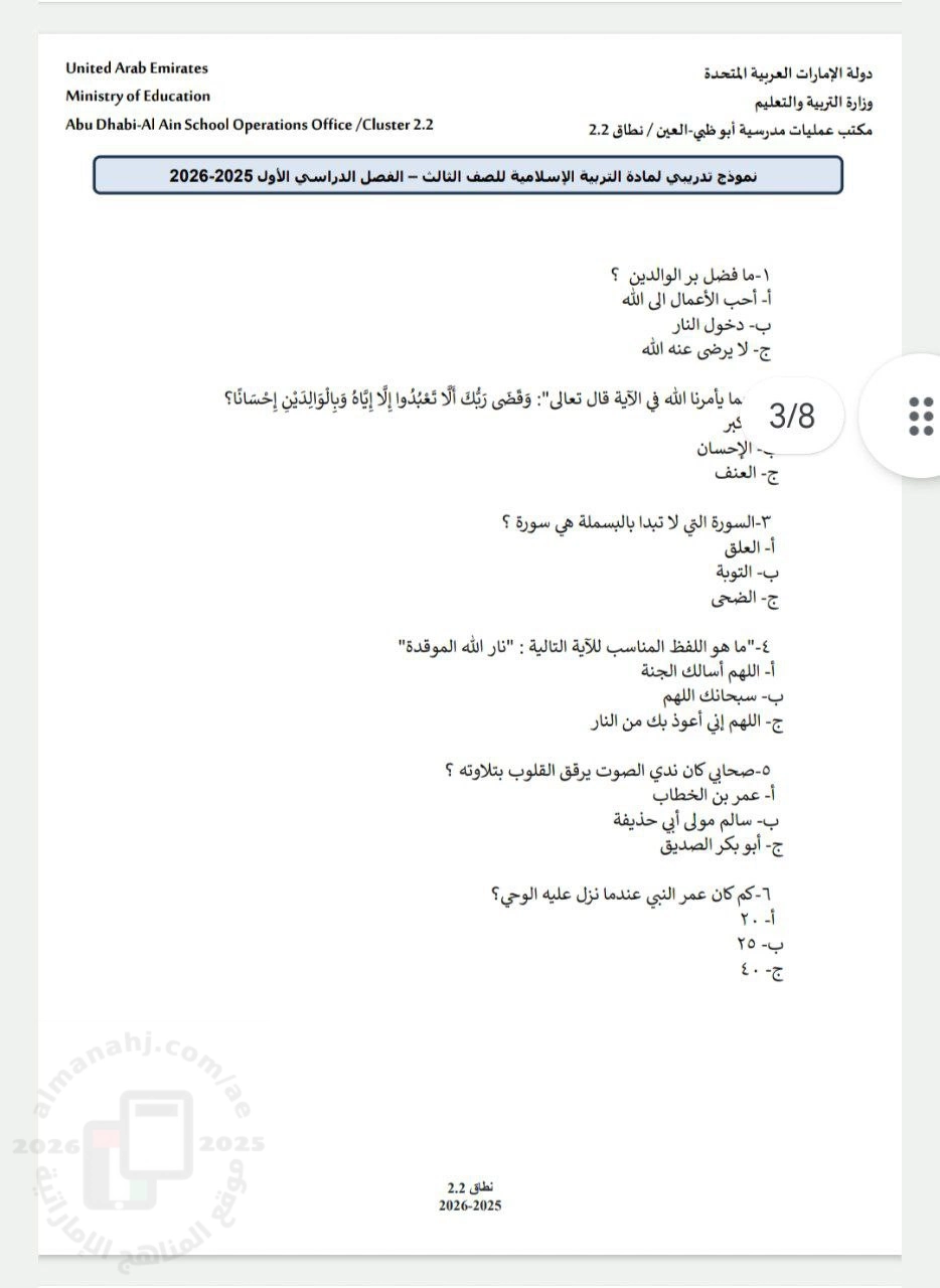 | المادة: تربية اسلامية | ||