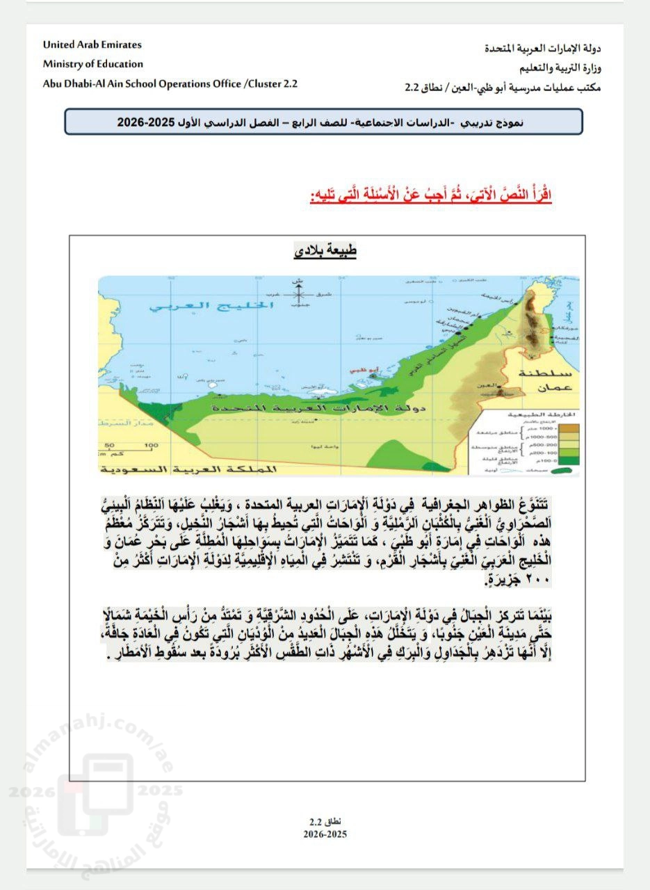 | نموذج تدريبي أول وفق الهيكل الوزاري متبوع بالإجابات - إعداد: مكتب عمليات مدرسية أبو ظبي | ||