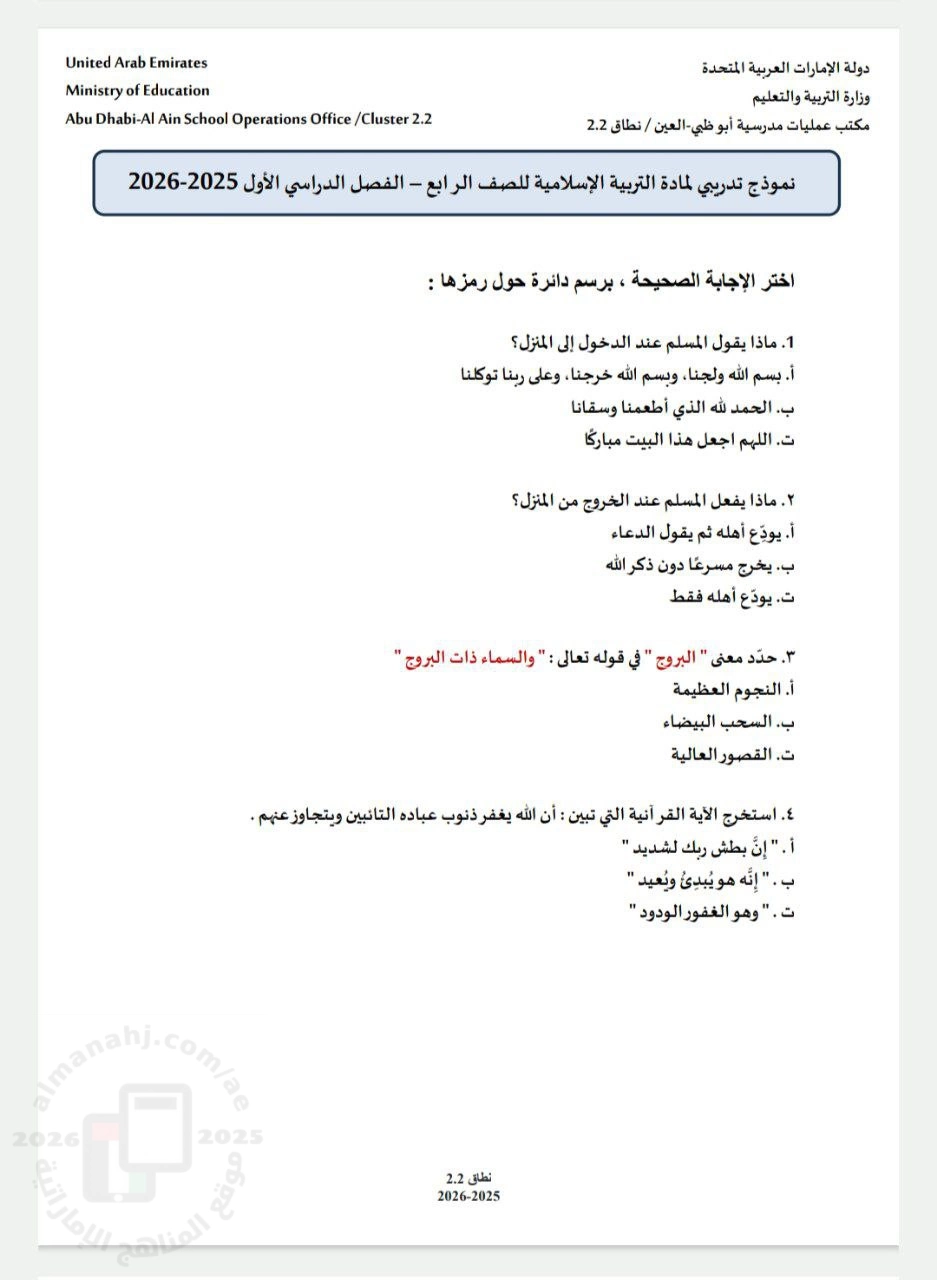 | تنويه: المناهج الإماراتية هو موقع مجاني وغير رسمي ولا يتطلب اشتراك لتحميل الملفات، لذلك يرجى عدم دفع أي مبلغ أو الاشتراك من أجل تحميل الملفات. | |