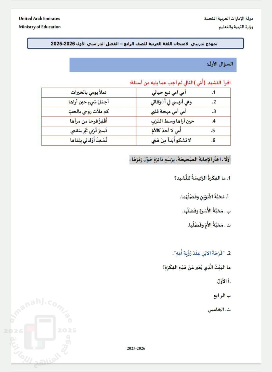 | نموذج تدريبي أول وفق الهيكل الوزاري متبوع بالإجابات - إعداد: مكتب عمليات مدرسية أبو ظبي | ||