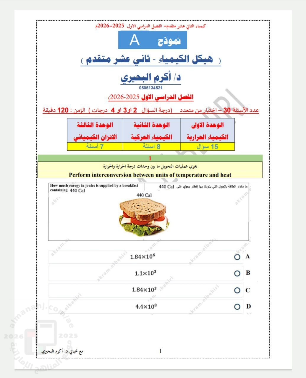 | تجميعة أسئلة اختبارات سابقة نموذج A وفق الهيكل الوزاري الجديد - إعداد: أكرم البحيري | ||