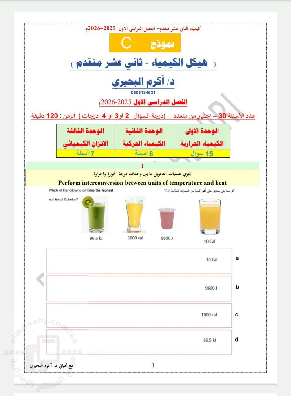 معلومات الملف: تجميعة أسئلة اختبارات سابقة نموذج C وفق الهيكل الوزاري الجديد بدون الحل