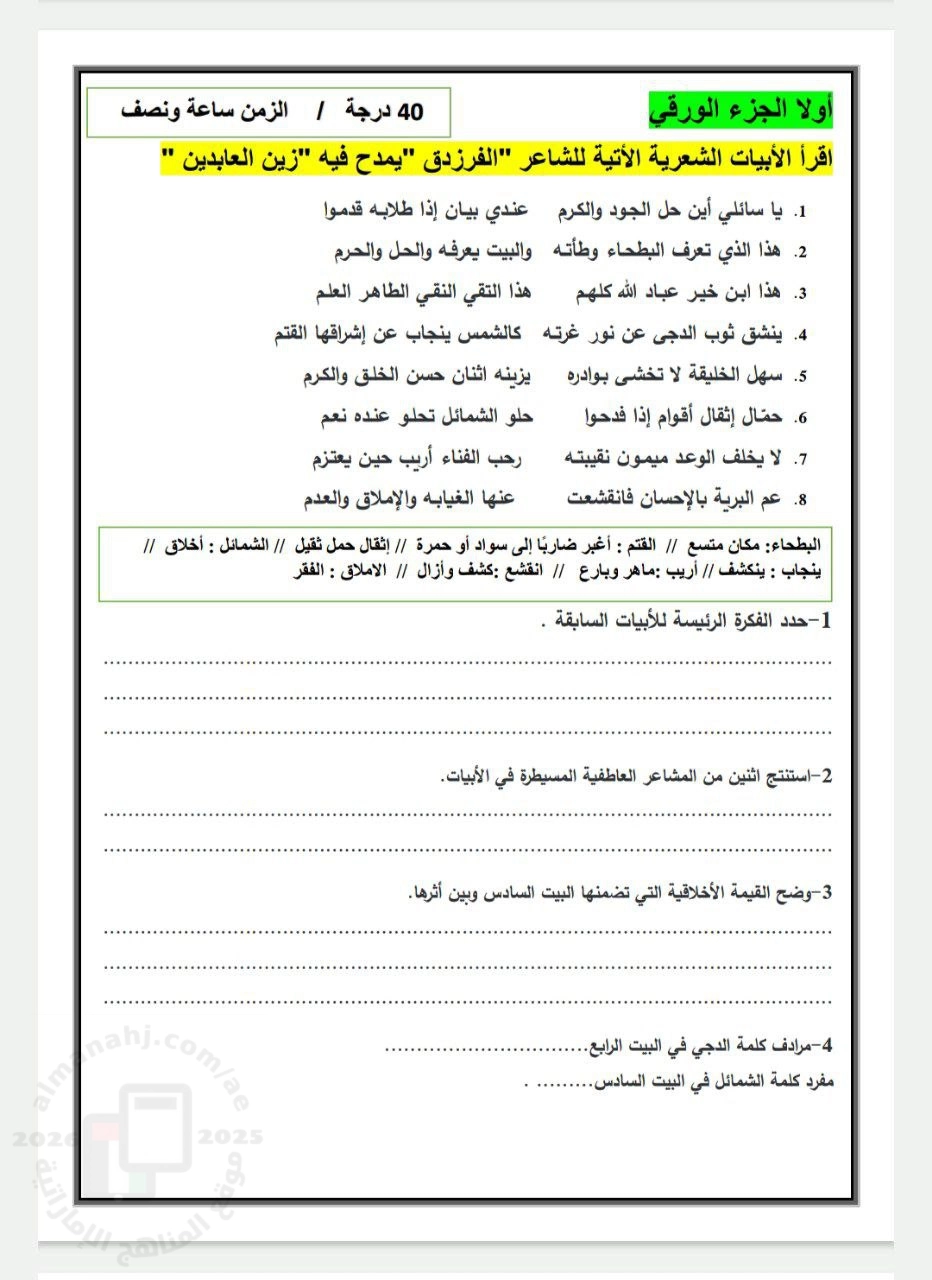 | أهلاً بكم جميعاً طلاباً ومدرسين وأهالي طلبة ومهتمين، في قسم دولة الإمارات ، نحن الآن في الفصل الأول من العام الدراسي 2025/2026 وتاريخ اليوم 2025/11/17 م | |
