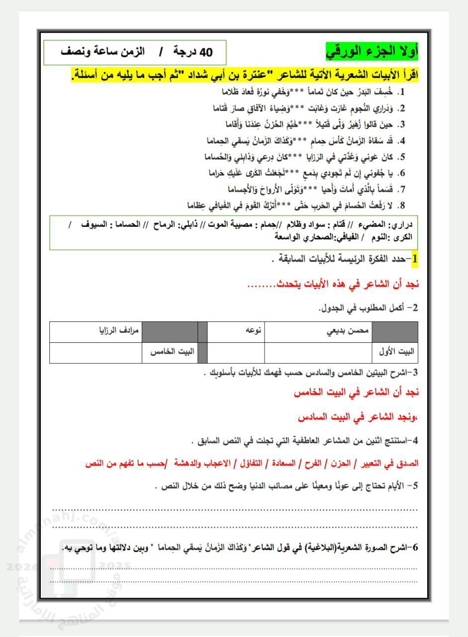 | أهلاً بكم جميعاً طلاباً ومدرسين وأهالي طلبة ومهتمين، في قسم دولة الإمارات ، نحن الآن في الفصل الأول من العام الدراسي 2025/2026 وتاريخ اليوم 2025/11/17 م | |