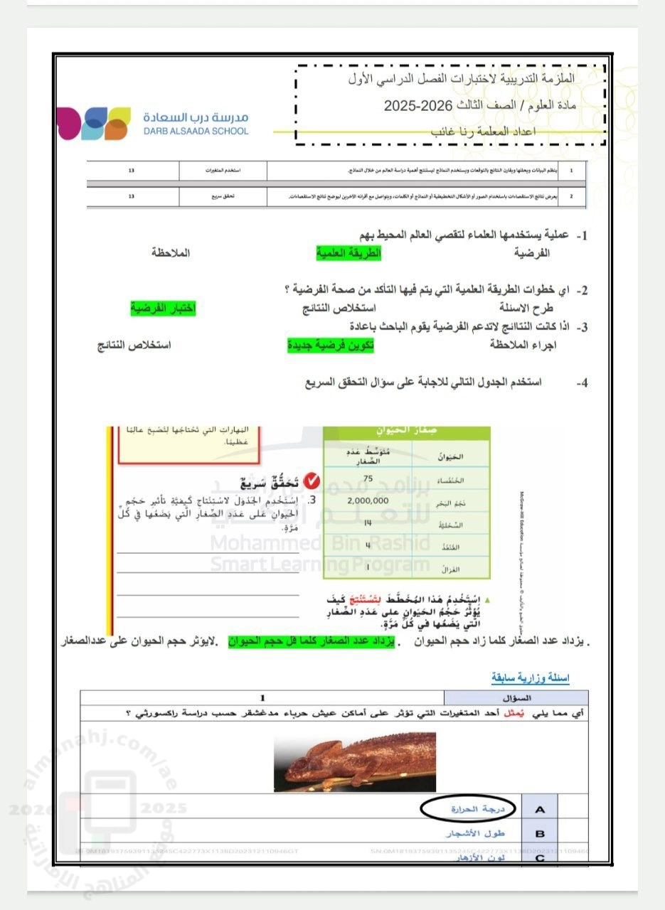 معلومات الملف: كراسة تدريبية مراجعة وفق الهيكل الوزاري الجديد منهج بريدج مع الحل من مدرسة درب السعادة