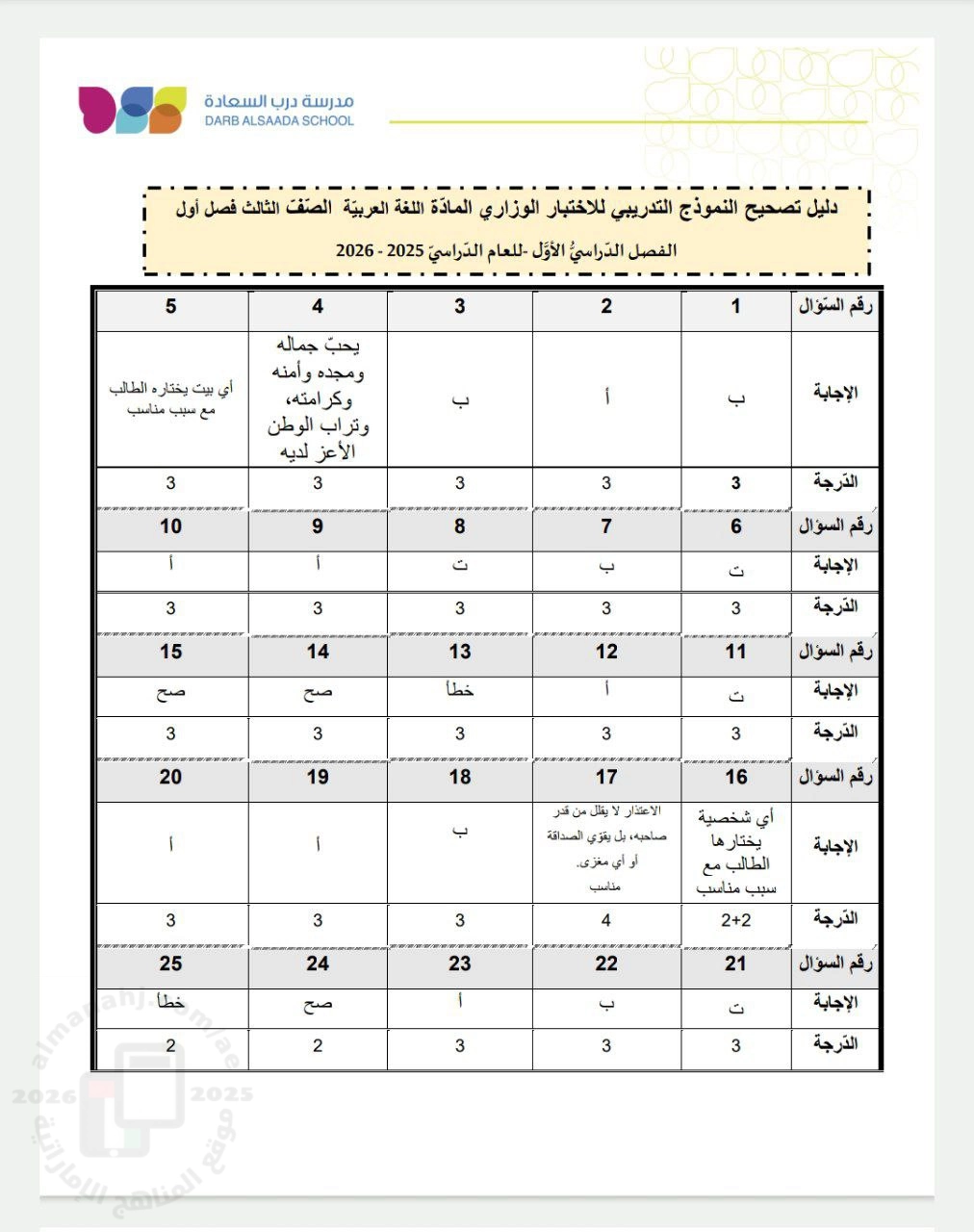 نموذج الأسئلة من الرابط التالي : https://almanahj.com/ae/id=36646 | ||