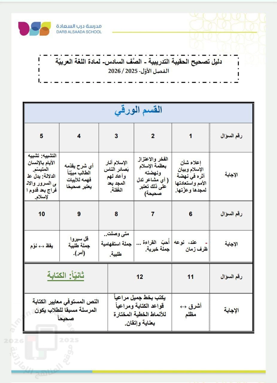 | حل كراسة تدريبية مراجعة وفق الهيكل الوزاري الجديد - إعداد: مدرسة درب السعادة | ||