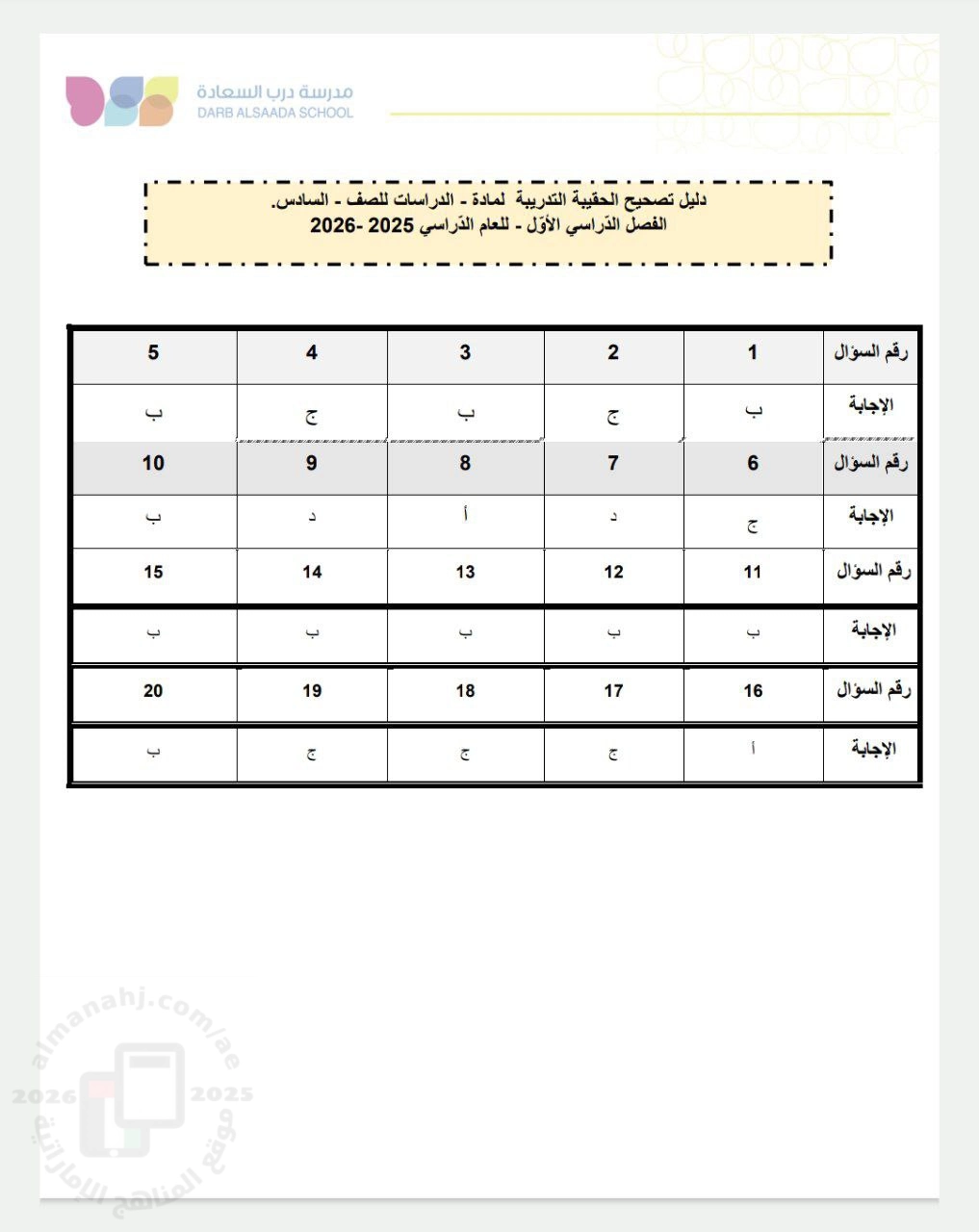 نموذج الأسئلة من الرابط التالي : https://almanahj.com/ae/id=36609 | ||