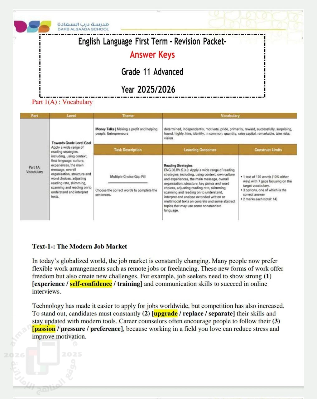 تم إيجاد الملف: حل كراسة تدريبية مراجعة وفق الهيكل الوزاري الجديد المسار المتقدم