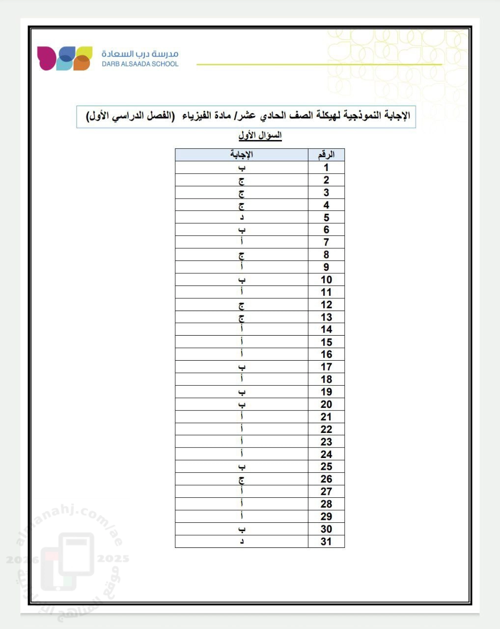 نموذج الأسئلة من الرابط التالي : https://almanahj.com/ae/id=36637 | ||