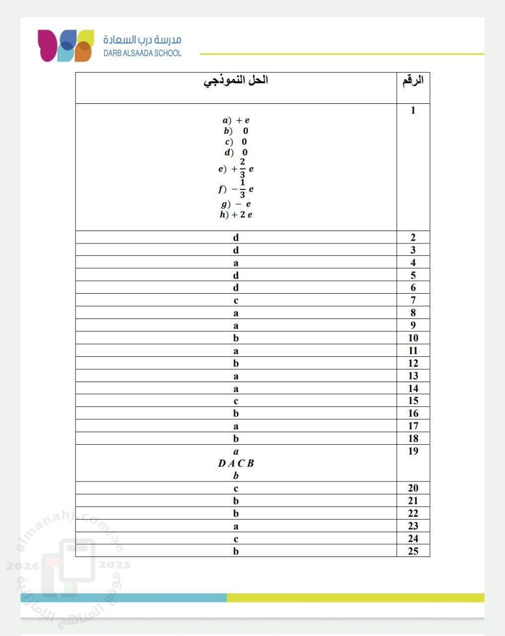 نموذج الأسئلة من الرابط التالي : https://almanahj.com/ae/id=36642 | ||