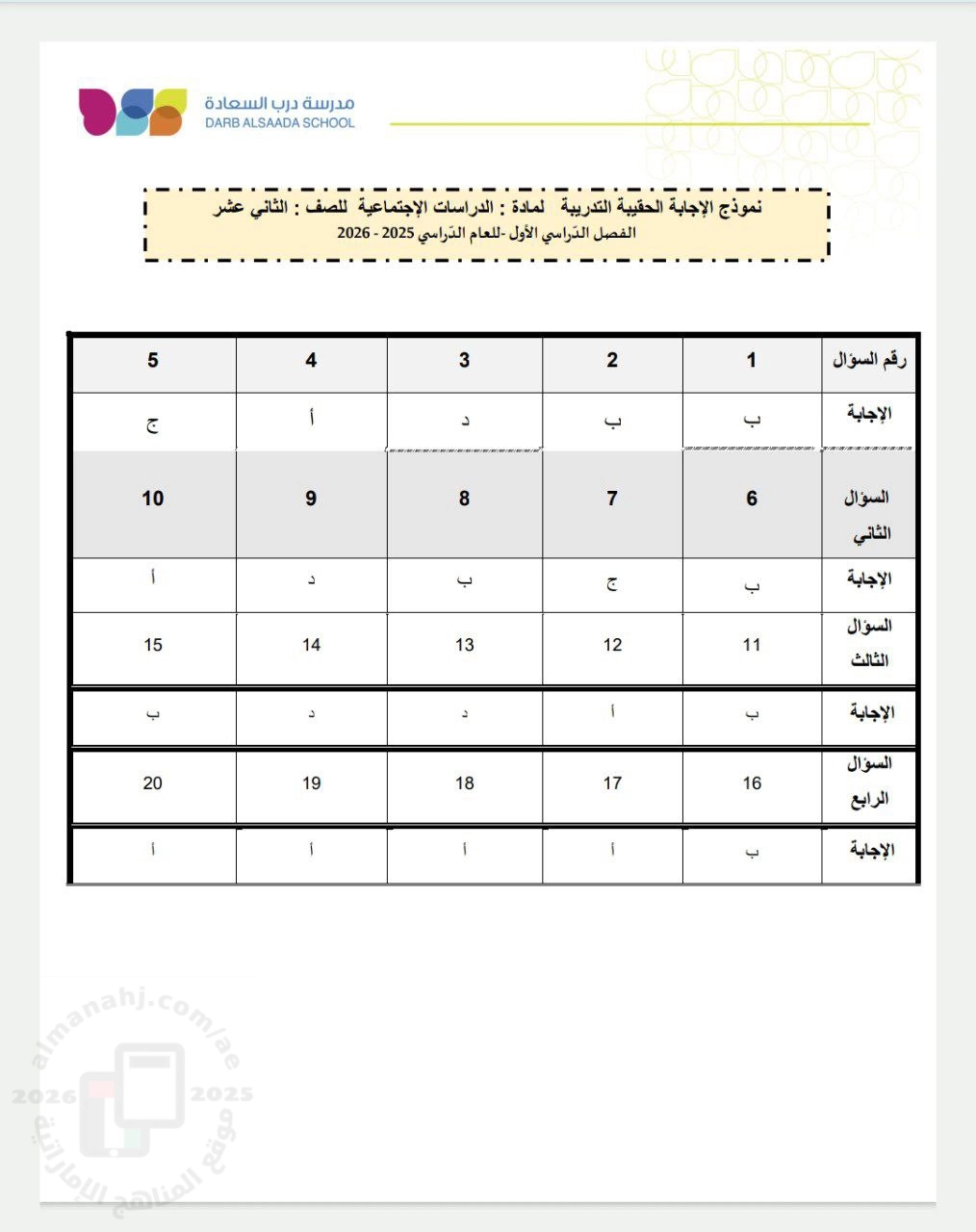 نموذج الأسئلة من الرابط التالي : https://almanahj.com/ae/id=36643 | ||