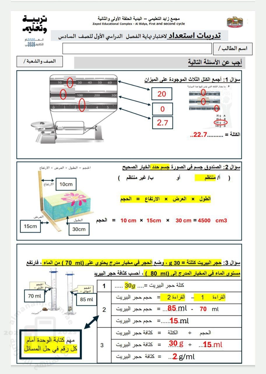 نموذج الأسئلة من الرابط التالي : https://almanahj.com/ae/id=37181 | ||