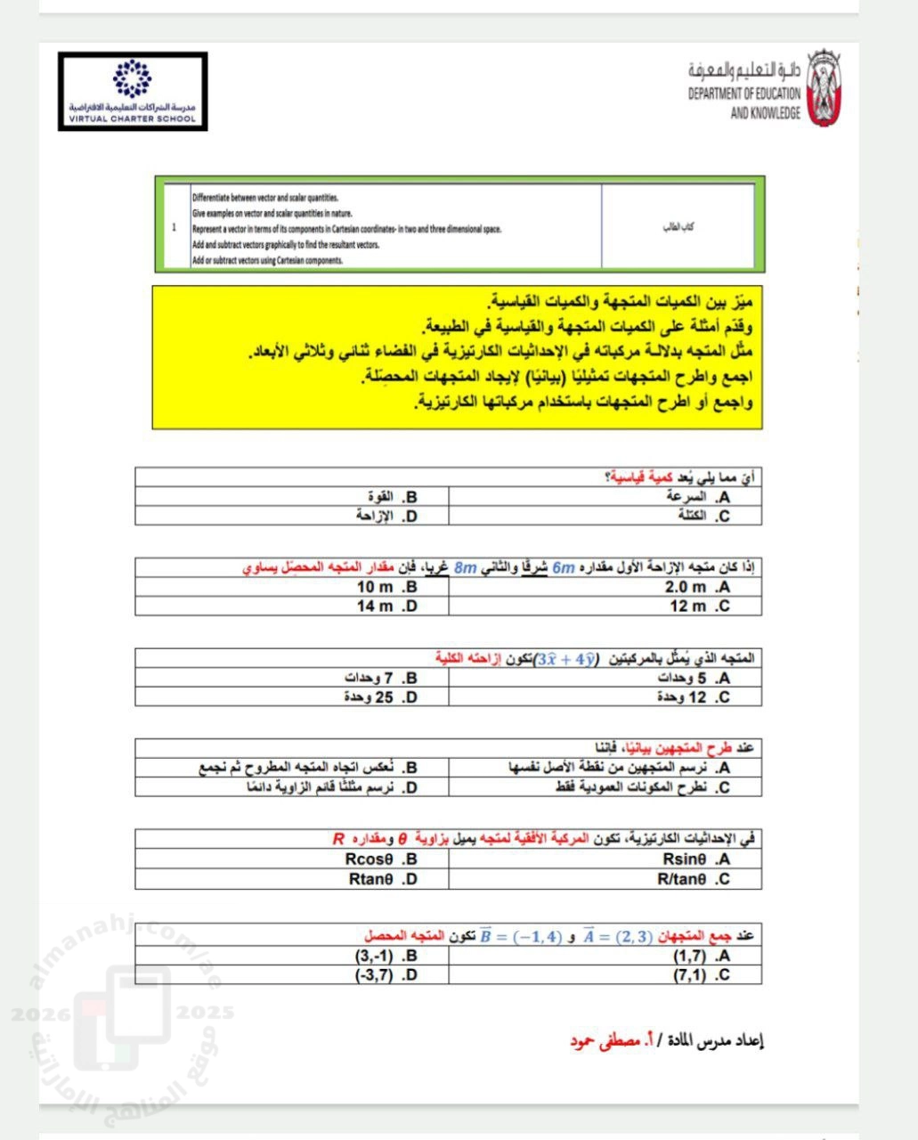 | أهلاً بكم جميعاً طلاباً ومدرسين وأهالي طلبة ومهتمين، في قسم دولة الإمارات ، نحن الآن في الفصل الأول من العام الدراسي 2025/2026 وتاريخ اليوم 2025/11/19 م | |