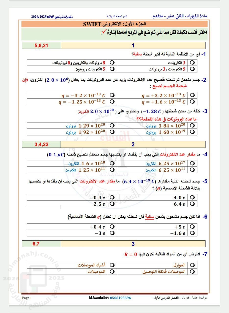 يتم الآن تحضير الملف (أسئلة مراجعة تدريبية وفق الهيكل الوزاري الجديد القسم الالكتروني) من أجل التحميل