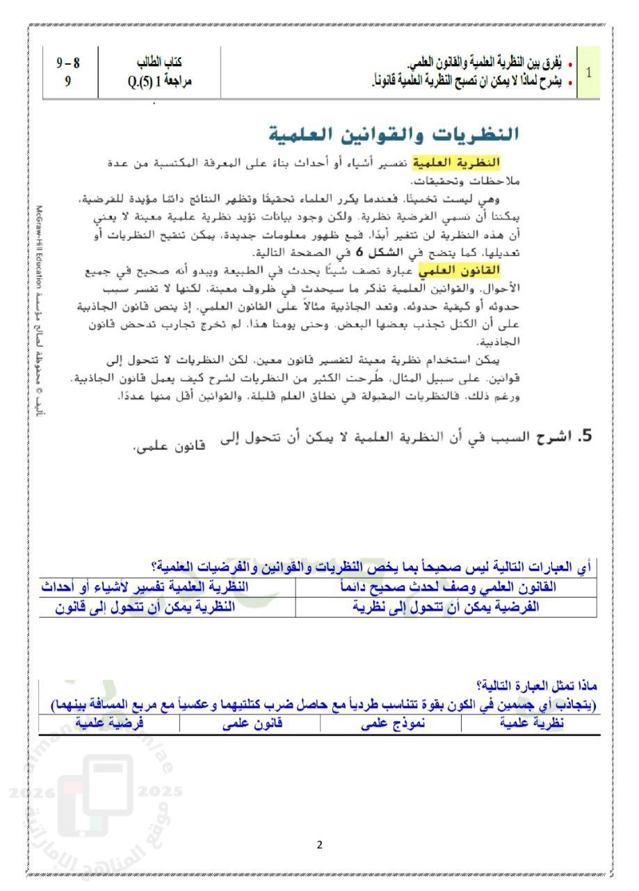 6. الصف التاسع العام, علوم, مراجعة نهائية وفق الهيكل الوزاري الجديد القسم الموضوعي منهج بريدج