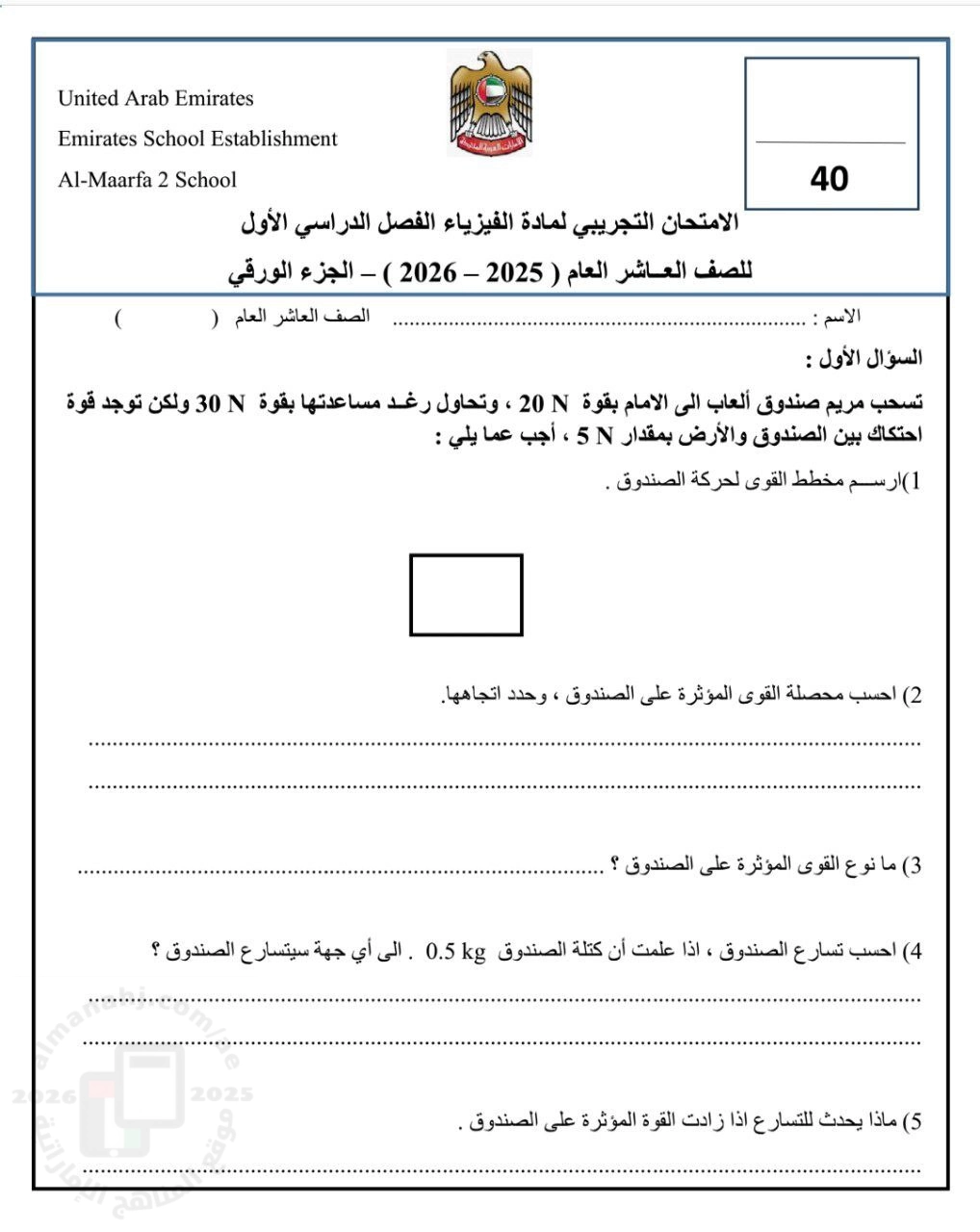 تم إيجاد الملف: نموذج الاختبار التجريبي في الفيزياء الجزء الورقي منهج بريدج