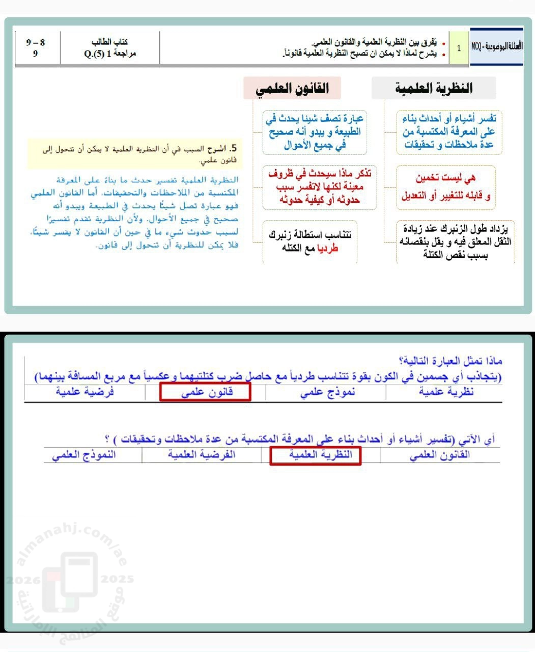 10. الصف الخامس, علوم, حل تجميعة مراجعة وفق الهيكل الوزاري الجديد منهج انسباير
