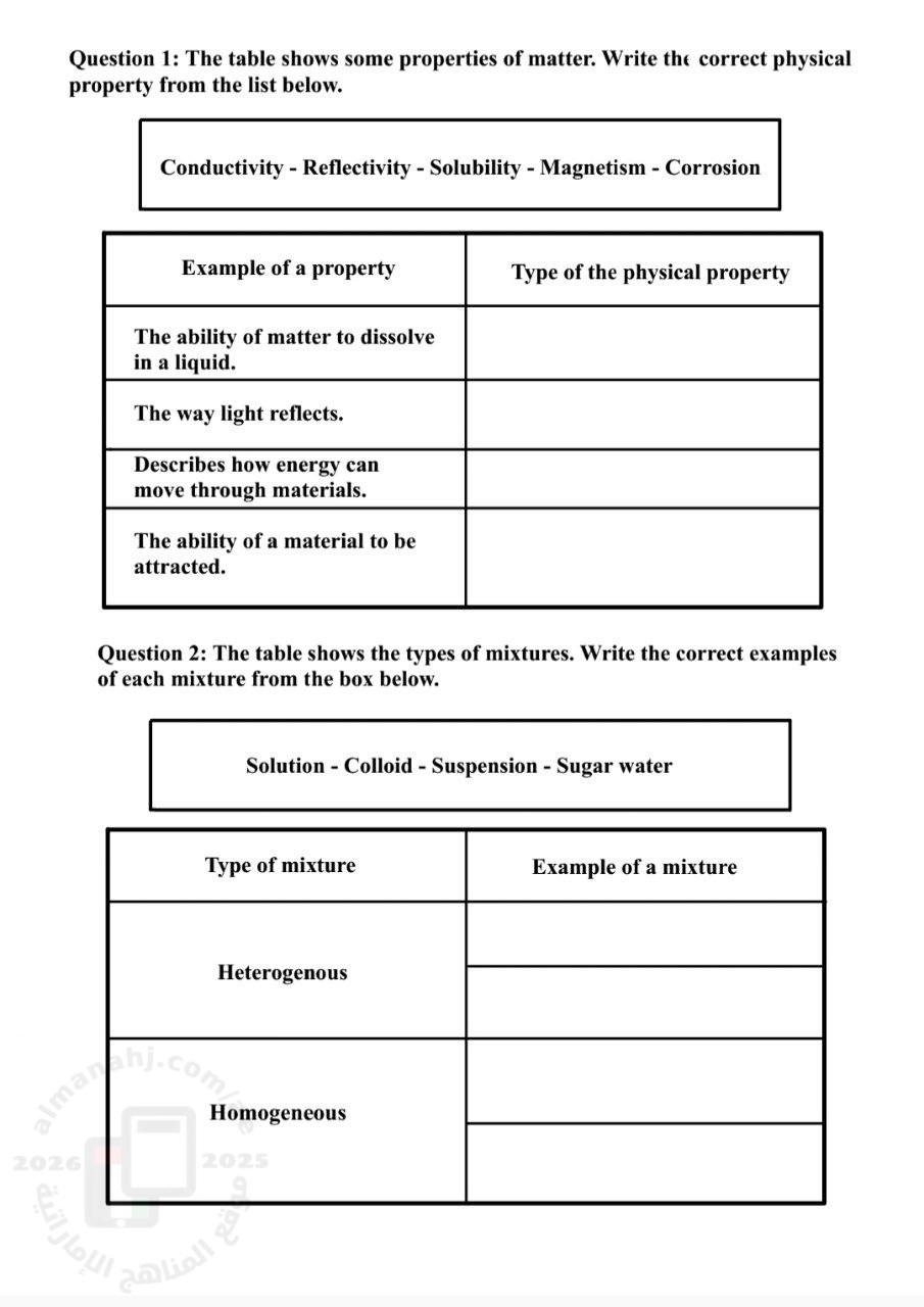 8. علوم, الفصل الأول, 2025-2026, مراجعة نهائية Final Exam Revision منهج انسباير Inspire بدون الحل