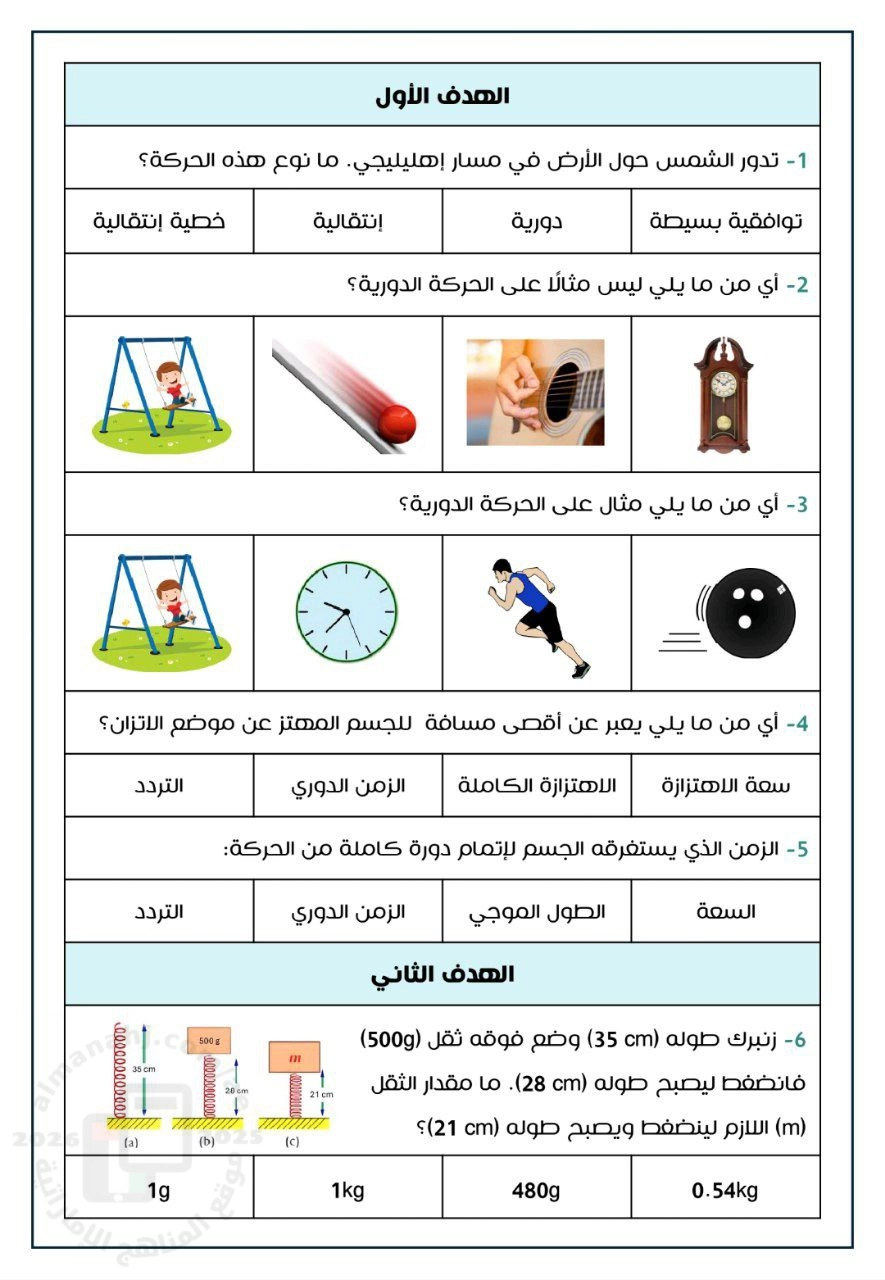 | أسئلة وزارية متوقعة في وحدة الاهتزازات والموجات وفق الهيكل الوزاري منهج بريدج - إعداد: راما السمان | ||