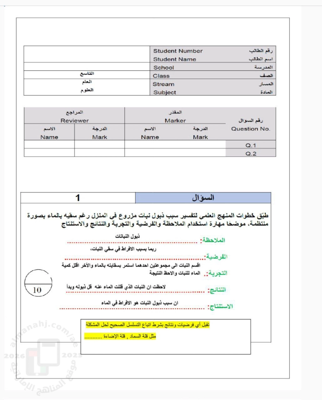 | المادة: علوم | ||