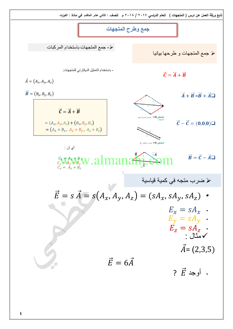 معلومات الملف: الصف الثاني عشر المتقدم, الفصل الثاني, فيزياء, 2017-2018, الوحدةالاولى المتجهات مهمة | |||