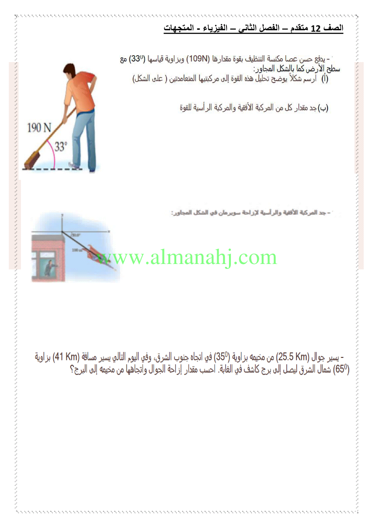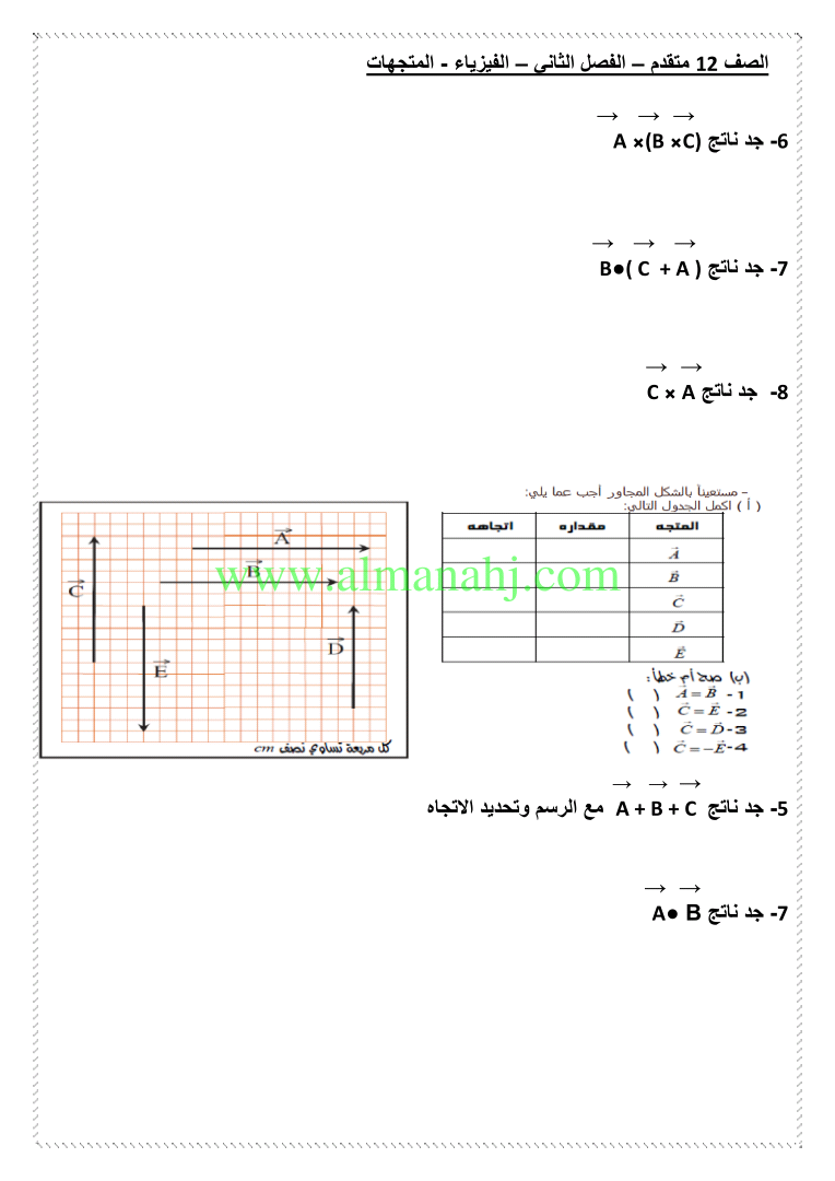معلومات الملف: الصف الثاني عشر المتقدم, الفصل الثاني, فيزياء, 2017-2018, اوراق عمل المتجهات | |||