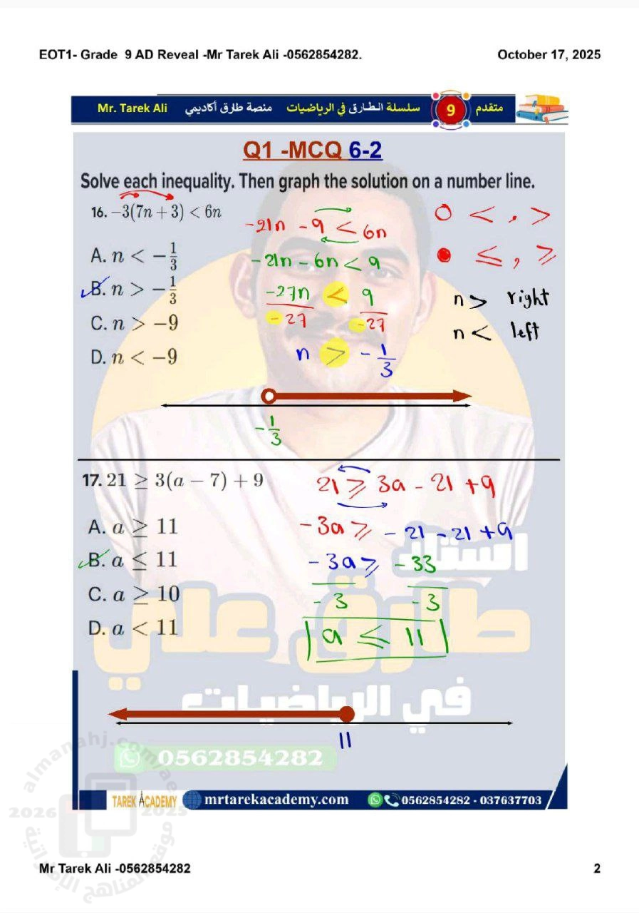 14. الصف التاسع المتقدم, رياضيات, حل مراجعة وفق كامل الهيكل الوزاري الجديد منهج ريفيل
