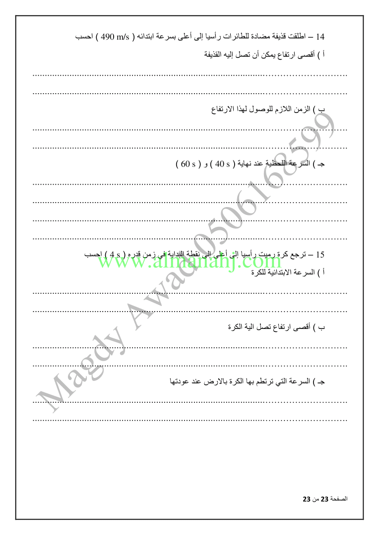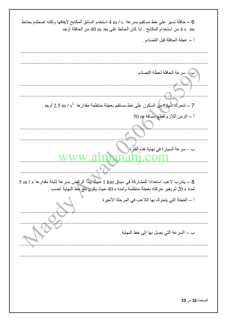 السابق: متقدم الوحدة الثانية الحركة في بعد واحد | الملف الحالي: 3731 | التالي: المراجعة النهائية في الوحدة الثانية النهايات والاتصال متبوعة بمفاتيح الإجابات | |
