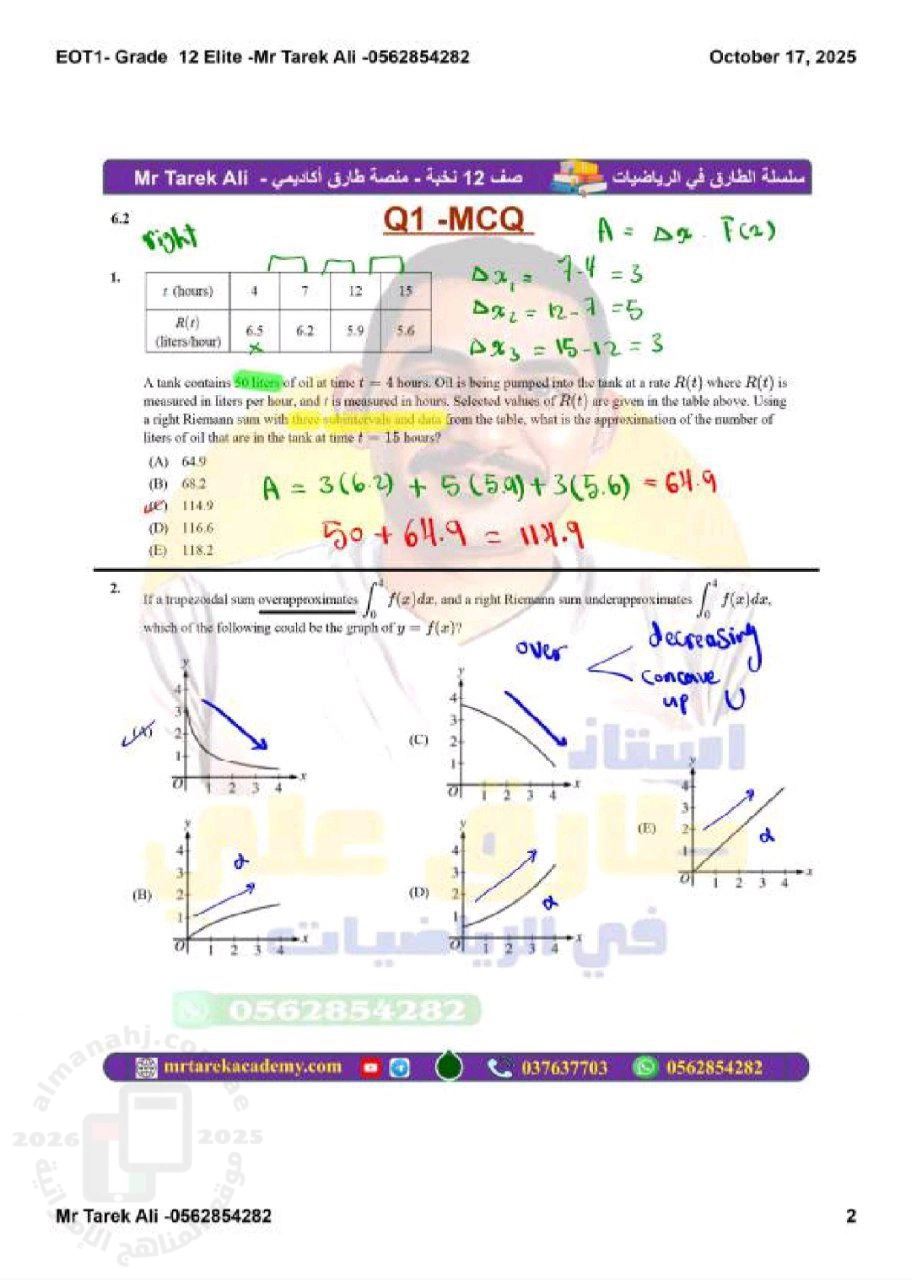 2. رياضيات, الفصل الأول, 2025-2026, حل مراجعة وفق كامل الهيكل الوزاري الجديد منهج ريفيل