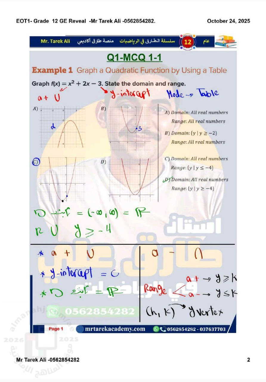 2. الصف الثاني عشر العام, رياضيات, حل مراجعة وفق كامل الهيكل الوزاري الجديد منهج بريدج