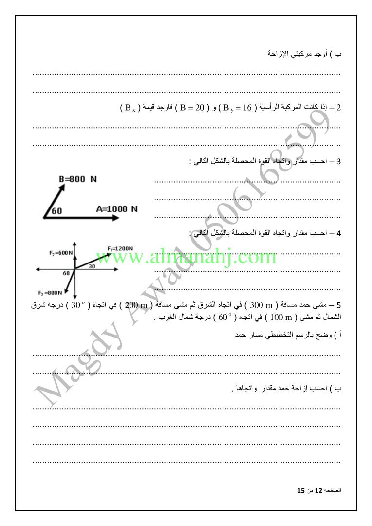 معلومات الملف: الصف الثاني عشر المتقدم, الفصل الثاني, فيزياء, 2017-2018, تلخيص درس المتجهات | |||