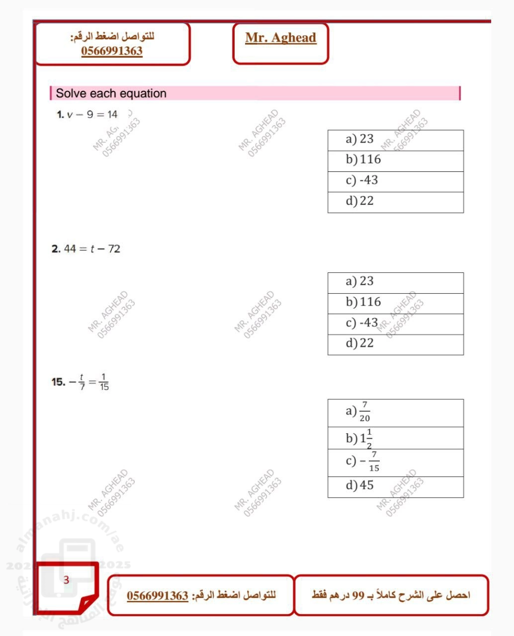 3. الصف الثامن, رياضيات, ملخص كامل أسئلة وفق الهيكل الوزاري الجديد منهج ريفيل