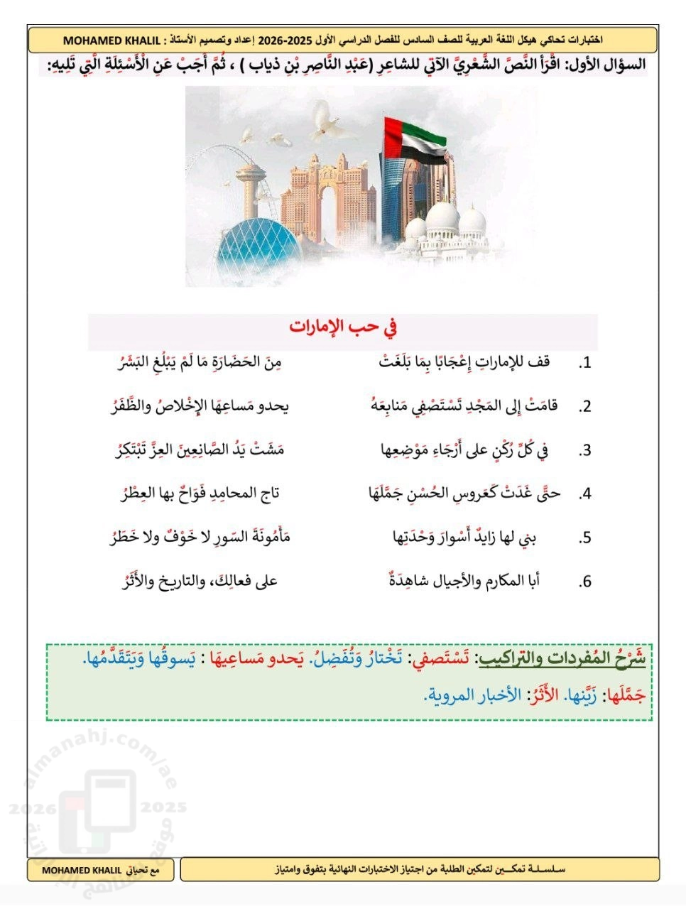 | أنت هنا: موقع المناهج ⇦ المناهج الإماراتية ⇦ الصف السادس ⇦ لغة عربية ⇦ الفصل الأول ⇦ اختبارات |