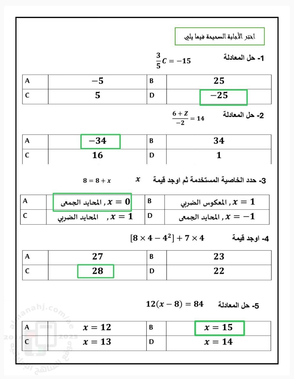 نموذج الأسئلة من الرابط التالي : https://almanahj.com/ae/id=36986 | ||