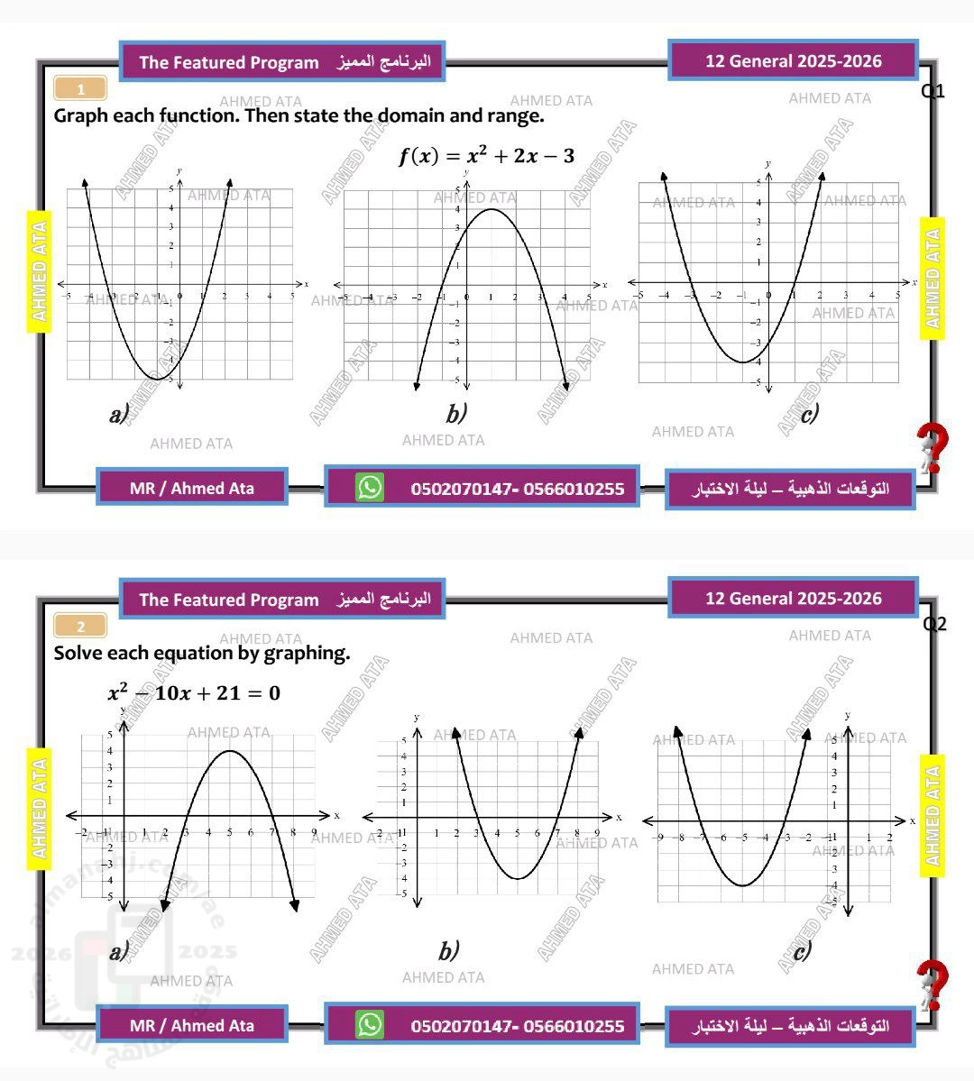 9. الصف الثاني عشر العام, رياضيات, التوقعات الذهبية وفق الهيكل الوزاري الجديد منهج ريفيل
