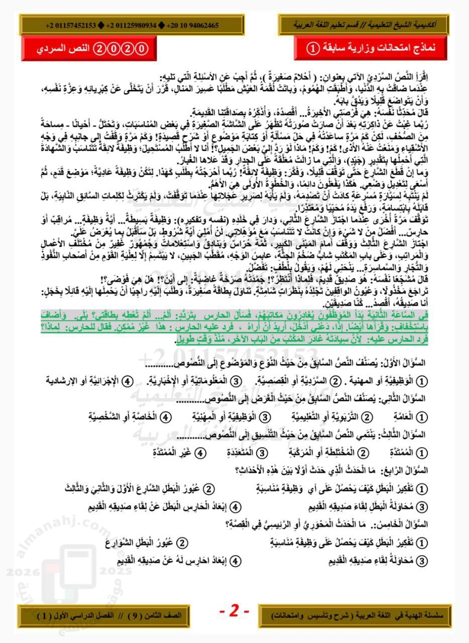 | بنك أسئلة امتحانات وزارية سابقة في النصوص الشعرية والسردية والمعلوماتية - إعداد: أكاديمية الشيخ التعليمية | ||