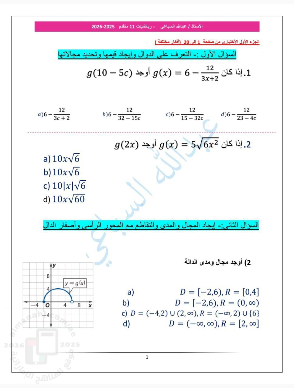 | السابق: تجميعة أسئلة مراحعة وفق الهيكل الوزاري الجديد منهج ريفيل | الملف الحالي: 37401 | أنت تتصفح الملف الأخير في الصف الحادي عشر المتقدم |