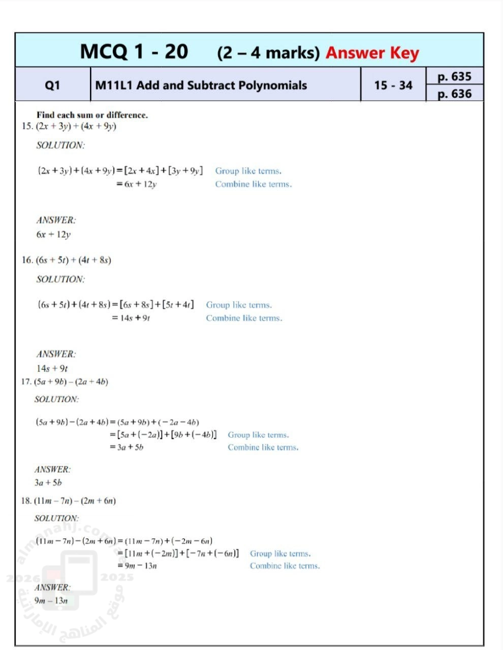 14. الصف التاسع العام, رياضيات, حل تجميعة الأسئلة الموضوعية (11-20) وفق الهيكل الوزاري منهج بريدج